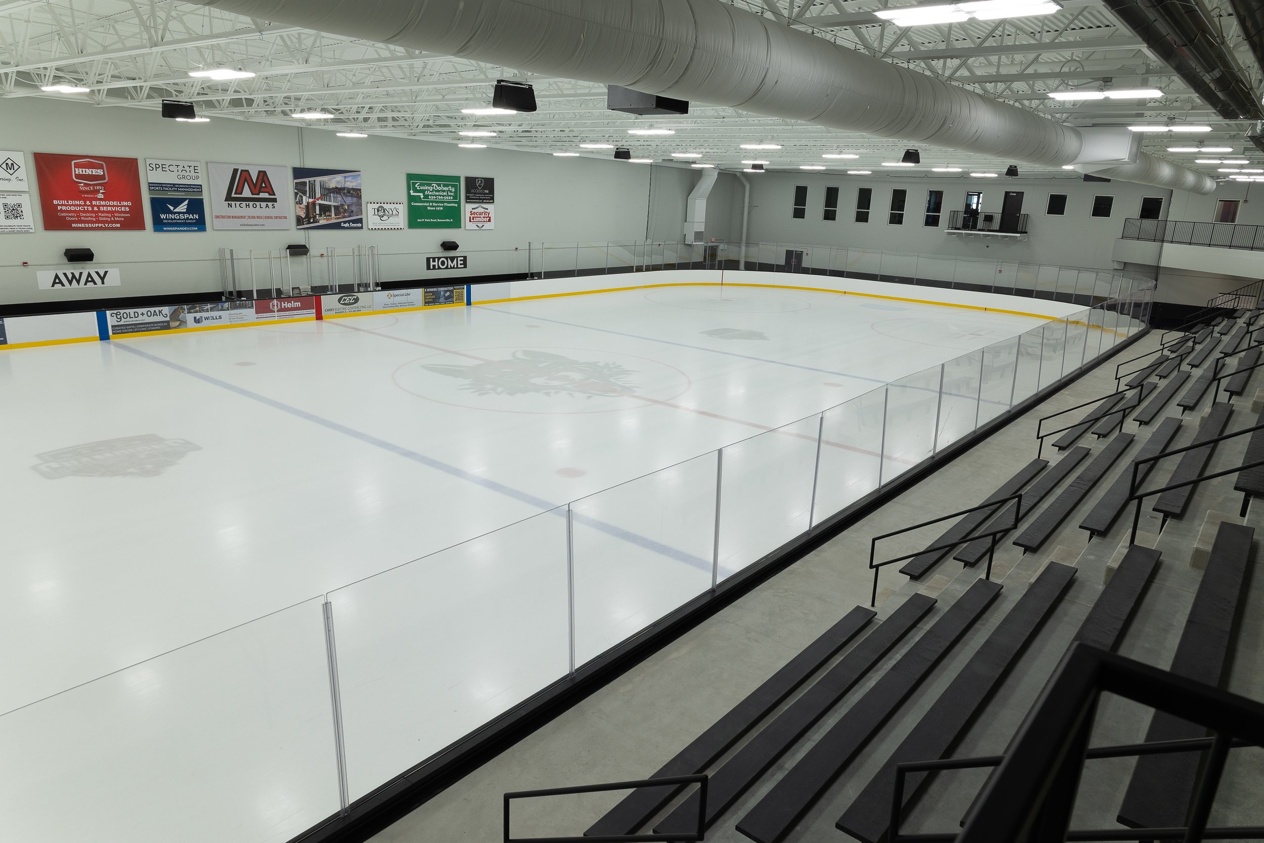Helm delivered a fully integrated design-build solution for the new Rosemont Ice Arena, providing both engineering and construction services to accelerate project delivery and streamline coordination. The facility serves as the practice home for the Chicago Wolves and the Mission Girls Hockey Team and includes two new sheets of ice, team locker rooms, office spaces, and a second-floor restaurant and club area.